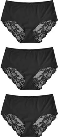 Damen 3er-Pack Nahtlose Slips mit Spitze, Midi Schwarz 42