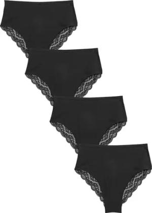 Damen Hohe Taille Hohes Bein 4 x Slips mit Spitze, hoher Beinausschnitt Schwarz 42