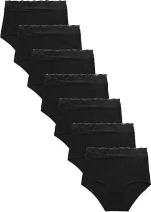 Damen Slips aus Baumwolle und Spitze, volle Bedeckung, 7er-Pack Schwarz 56