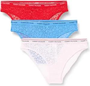 Damen 3er Pack Slips Bikini Form mit Spitze, Mehrfarbig (Desert Sky/White/Primary Red), M