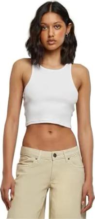 Damen Ladies Cropped Rib Top White, XS