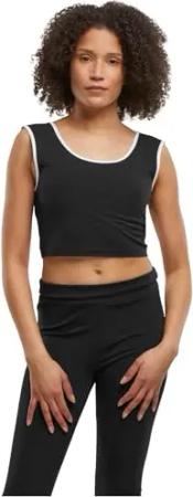 Damen Ladies Rib Trapeze Cropped Top Black, 4XL