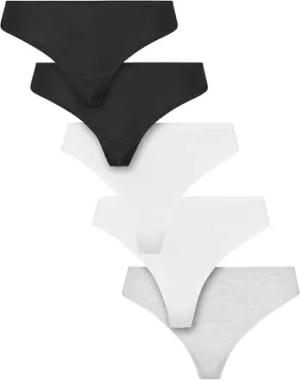 Ladies Basic Cotton Tanga 5-Pack Black+Black+White+White+heathergrey, S