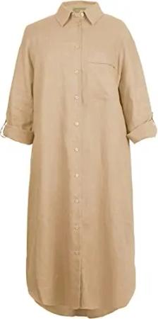 Midi-Hemdblusenkleid aus Leinen Beige 38