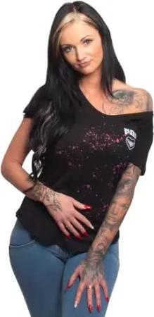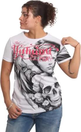 Damen Dark Skull Curved V-Neck T-Shirt