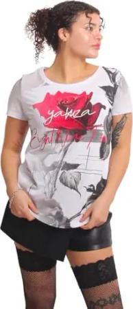 Damen Mesh Rose Curved V-Neck T-Shirt