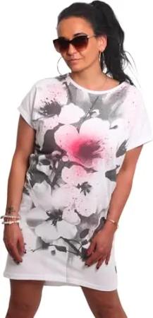 Damen Flower Style Urban T-Shirt Kleid, Weiß, L