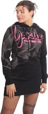 Damen Liquid Rose Hoodie Kleid, Grau/Gelb, XS