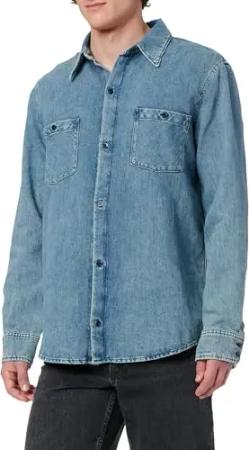 Men's L/S Regular Twill Vulcan Shirt, Blue, Large