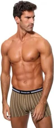 1 x Herren-Boxershorts, mit geschlossener Taille, extra weich, Khaki, gestreift, 52
