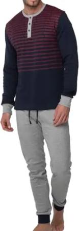 Herren Nachtwäsche, Pyjamaset, Marineblauer Druck, M