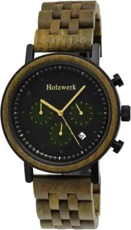 Holzwerk BERGHEIM Herren Holz & Edelstahl Chronograph Datum Uhr, grün, schwarz