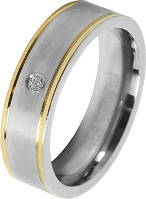 Eheringe Partnerringe Verlobungsringe Edelstahl mit Simili+ Gravur goldfarbig Antragsringe Trauringe Freundschaftsringe (Herrenring, 72)