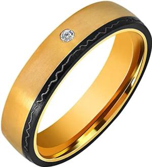 Eheringe Partnerringe Verlobungsringe Edelstahl mit Simili+ Gravur schwarz goldfarbig Antragsringe Trauringe Freundschaftsringe (Herrenring, 64)