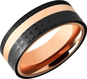 Eheringe Partnerringe Verlobungsringe Edelstahl mit Simili+ Gravur schwarz roségoldfarbig (Herrenring, 64)