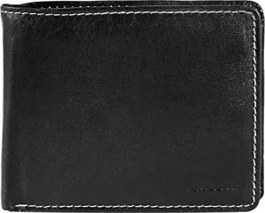 Herren-Geldbörse Echt Leder Querformat Ziernähte 12 x 9 cm 3000031 (schwarz weiß)