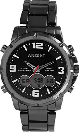 Herren-Uhr Edelstahl Datum Stoppuhr Analog Digital 2420026 (schwarz)