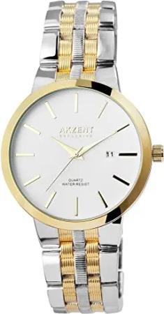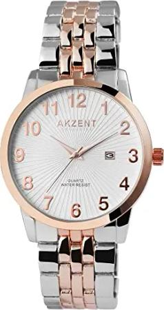 Raptor Akzent Exclusive Herren-Uhr Metall Datum Clipverschluss Analog Quarz 2800072 (silberfarbig goldfarbig weiß)