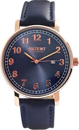 Excellanc Akzent Exclusive Herren - Uhr Lederimitations Armbanduhr Dornschließe Analog Quarz 2900188 (Dunkelblau/Dunkelblau)