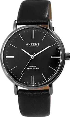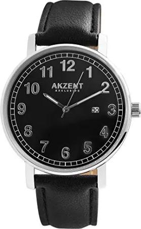 Excellanc Akzent Exclusive Herren–Uhr Kunstleder Dornschließe Analog Quarz 2900202 (schwarz)