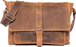 XL Herren Leder Umhängetasche 15,6 Zoll HARRY Braun Vintage - Echt Ledertasche mit Laptopfach -businesstasche Herren Aktentasche Messenger Unitasche Schultertasche Freizeittasche Tragetasche