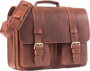 Leder Aktentasche Herren 15,6 Zoll Laptoptasche handgefertigt aus Premium Leder braun Vintage - Businesstasche Notebook Lehrertasche Unitasche Schultertasche Umhängetasche Kofferschlaufe ROY