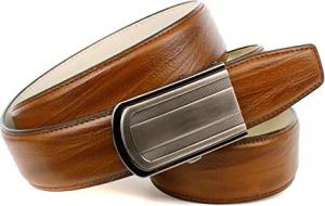 Herren Automatik-Ledergürtel – Cognac geflämmt, 3,5 cm breit, Echtleder mit Maserung, stufenlos verstellbar, elegante Ratschenverschluss-Technologie (100)