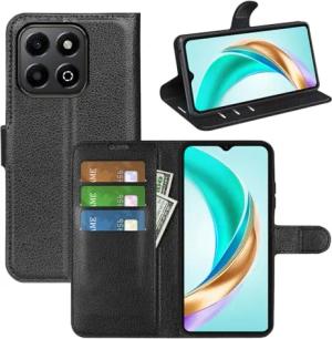 Handyhülle Kompatibel mit Honor X6A / X6B | Premium TPU Klapphülle mit Kartenfächern | Magnetverschluss Wallet Flip Case Standfunktion | Schwarz