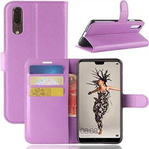 Handyhülle Kompatibel mit Huawei P20 | Premium Qualität TPU Klapphülle für P20 mit Kartenfächern | Magnetverschluss Handyhülle | Lila