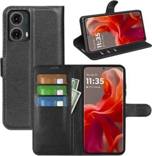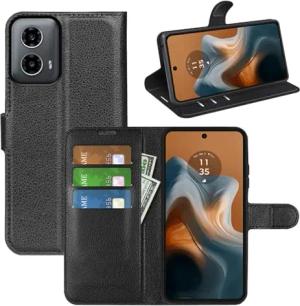 Handyhülle Kompatibel mit Motorola Moto G34 | Premium Qualität TPU Klapphülle für Moto G34 mit Kartenfächern | Magnetverschluss Handyhülle | Schwarz