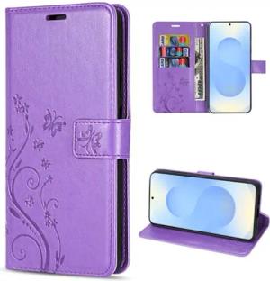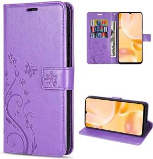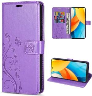 Handyhülle kompatibel mit ZTE Blade V60 Vita | Premium PU Leder Handy Hülle Wallet Case | Schutzhülle Blumen Klapphülle | Lila