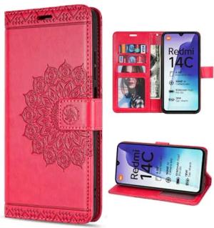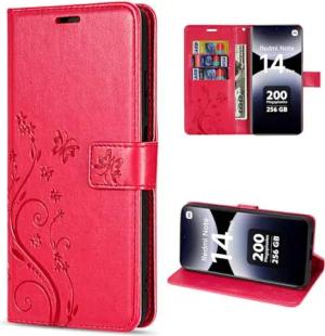 Handyhülle kompatibel mit Poco X7 Pro 5G | Premium PU Leder Handy Hülle Wallet Case | Schutzhülle Blumen Klapphülle | Rot
