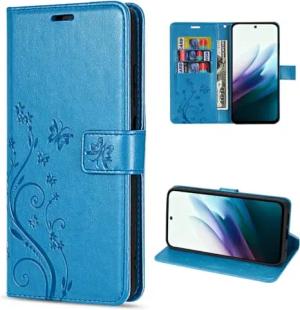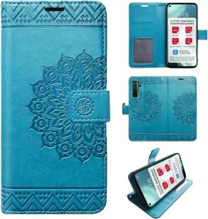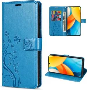 Handyhülle kompatibel mit ZTE Blade V60 Vita | Premium PU Leder Handy Hülle Wallet Case | Schutzhülle Blumen Klapphülle | Blau