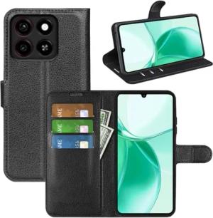 Handyhülle Kompatibel mit ZTE Blade A35 / A55 | Premium TPU Klapphülle mit Kartenfächern | Magnetverschluss Wallet Flip Case Standfunktion | Schwarz