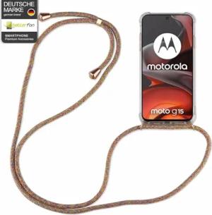 Handykette Hülle kompatibel mit Motorola Moto G15 / Moto G15 Power | Smartphone Hülle Case mit Band | Handyhülle Handyband zum Umhängen | Rainbow