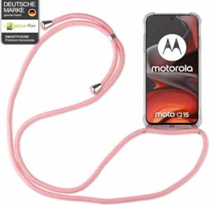 Handykette Hülle kompatibel mit Motorola Moto G15 / Moto G15 Power | Smartphone Hülle Case mit Band | Handyhülle Handyband zum Umhängen | Rosa