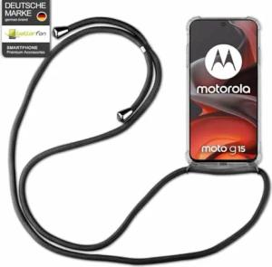 Handykette Hülle kompatibel mit Motorola Moto G15 / Moto G15 Power | Smartphone Hülle Case mit Band | Handyhülle Handyband zum Umhängen | Schwarz