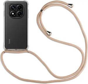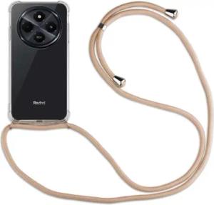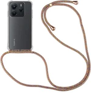 Handykette Hülle kompatibel mit Xiaomi Redmi Note 14 4G | Smartphone Hülle Case mit Band | Handyhülle Handyband zum Umhängen | Beige/Braun