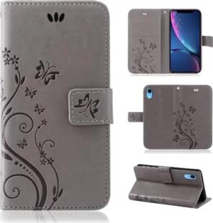 Hülle Kompatibel mit Apple iPhone XR | Premium PU Leder Handyhülle Wallet Case für iPhone XR | Schutzhülle Blumen Klapphülle Handyhülle | Grau