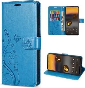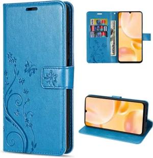 Hülle Kompatibel mit ZTE Blade A55 | Premium PU Leder Handyhülle Wallet Case für Blade A55 | Schutzhülle Blumen Klapphülle Handyhülle | Blau