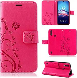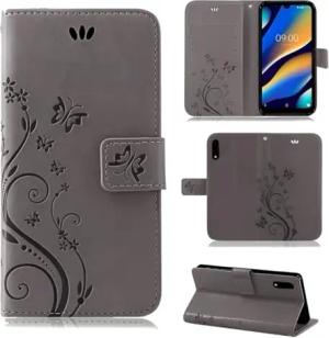 Hülle Kompatibel mit Motorola Moto E6S | Premium PU Leder Handyhülle Wallet Case für Moto E6S | Schutzhülle Blumen Klapphülle Handyhülle | Grau