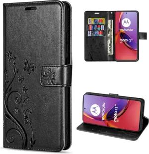 Hülle Kompatibel mit Motorola Moto G84 | Premium PU Leder Handyhülle Wallet Case für Moto G84 | Schutzhülle Blumen Klapphülle Handyhülle | Schwarz