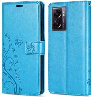 Hülle Kompatibel mit Oppo A77 5G | Premium PU Leder Handyhülle Wallet Case für A77 5G | Schutzhülle Blumen Klapphülle Handyhülle | Blau