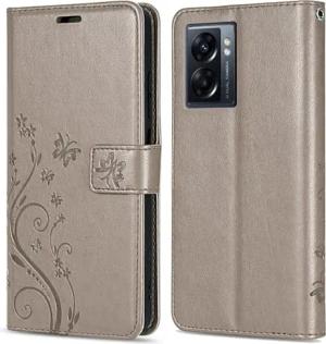 Hülle Kompatibel mit Oppo A77 5G | Premium PU Leder Handyhülle Wallet Case für A77 5G | Schutzhülle Blumen Klapphülle Handyhülle | Grau