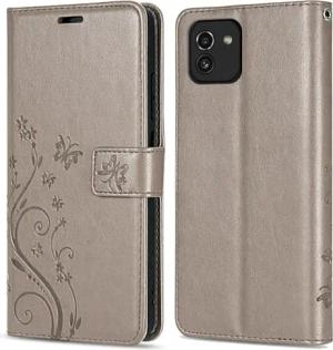 Hülle Kompatibel mit Samsung Galaxy A03 | Premium PU Leder Handyhülle Wallet Case für Galaxy A03 | Schutzhülle Blumen Klapphülle Handyhülle | Grau