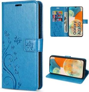 Hülle Kompatibel mit Samsung Galaxy A23 5G | Premium PU Leder Handyhülle Wallet Case für Galaxy A23 5G | Schutzhülle Blumen Klapphülle Handyhülle | Blau