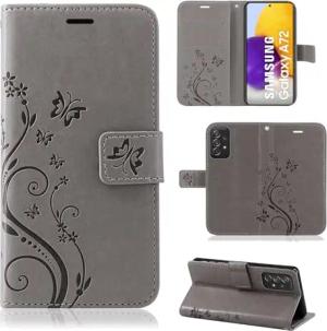Hülle Kompatibel mit Samsung Galaxy A72 | Premium PU Leder Handyhülle Wallet Case für Galaxy A72 | Schutzhülle Blumen Klapphülle Handyhülle | Grau