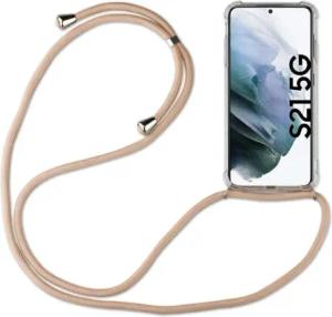 Hülle Kompatibel mit Samsung Galaxy S21 | Handykette Smartphone Halskette Hülle mit Band | Handyhülle mit Kordel zum Umhängen Kompatibel für Galaxy S21 | Beige/Braun