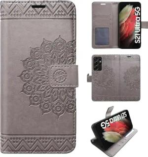 Hülle Kompatibel mit Samsung Galaxy S21 Ultra 5G | Klapphülle Schutzhülle mit Kartenfächer Kompatibel für Galaxy S21 Ultra 5G | Magnetverschluss Klapphülle | Grau