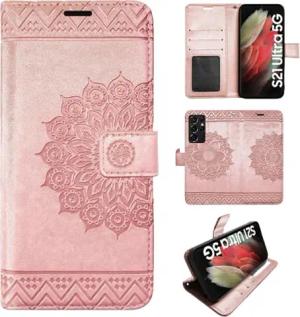 Hülle Kompatibel mit Samsung Galaxy S21 Ultra 5G | Klapphülle Schutzhülle mit Kartenfächer Kompatibel für Galaxy S21 Ultra 5G | Magnetverschluss Klapphülle | Rosegold